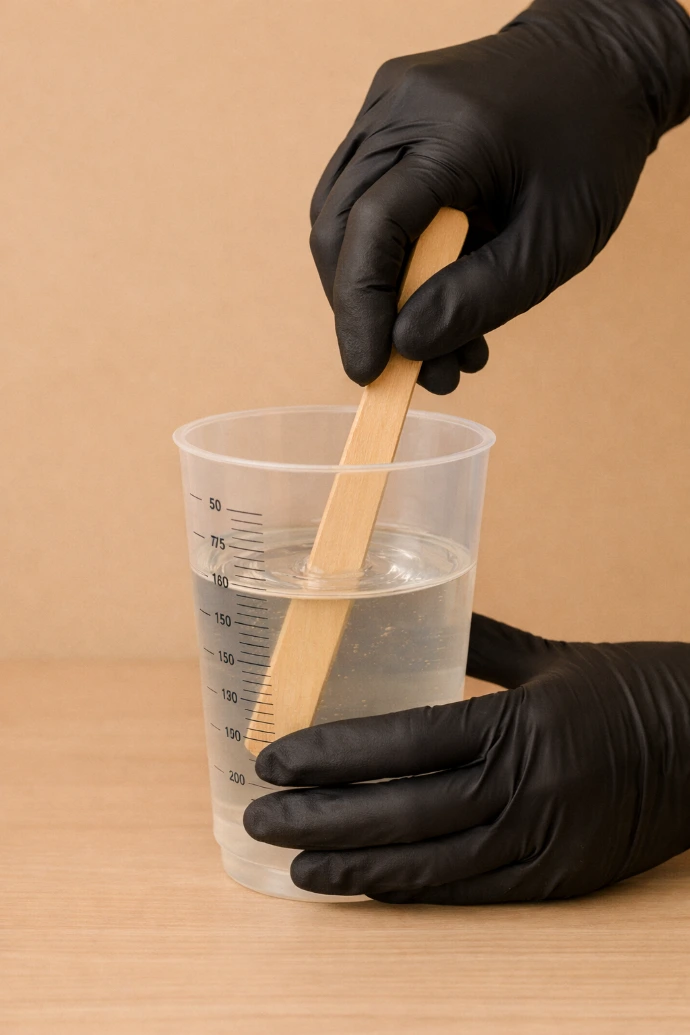 Mix Thoroughly: Stir slowly for 2–3 minutes, scraping the sides and bottom. Avoid vigorous stirring to prevent bubbles.