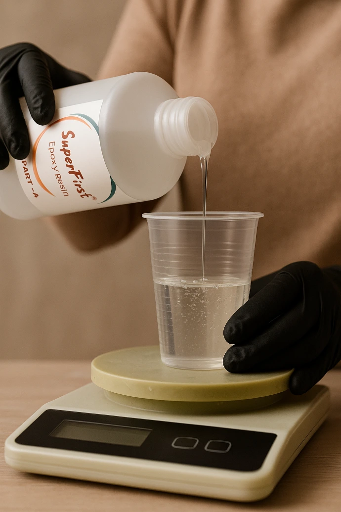 SuperFirst Epoxy Resin is a high-quality two-part resin system designed to create strong, seamless, and glossy surfaces. It forms a durable protective layer that enhances the look of the surface while also improving its strength, water resistance, and lifespan