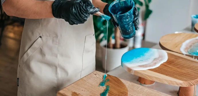 Pour & Spread: Pour the resin mixture onto your project. The self-leveling formula spreads evenly on its own for a smooth finish.